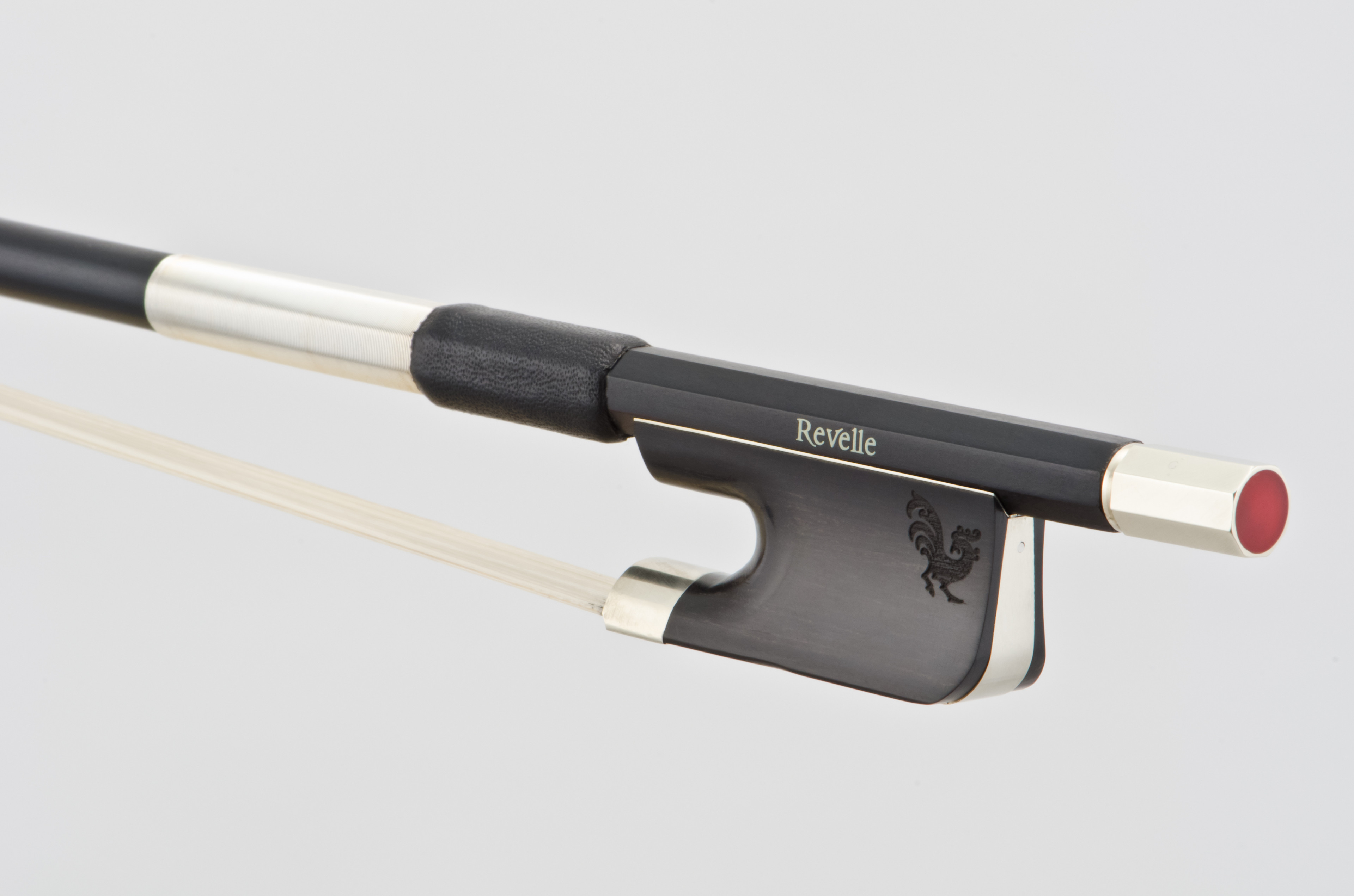 - Revelle signature red button and etched rooster, nickel tip plate, parisian eye, matte carbon fiber core