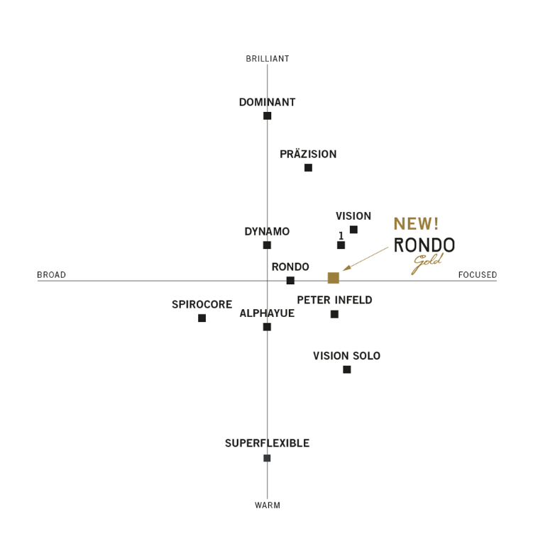 Rondo Gold for Viola strings are warm, shiny and provide freedom for expression!